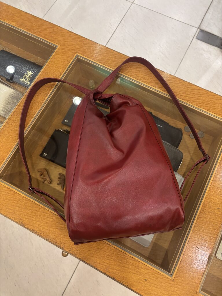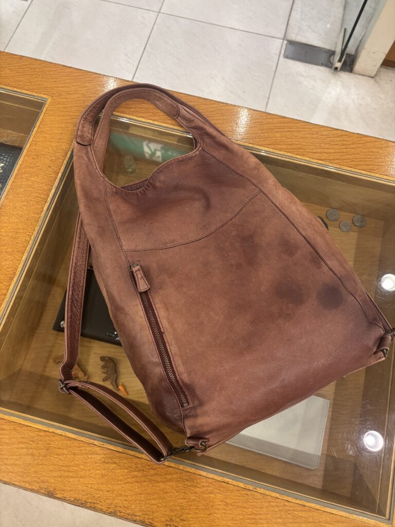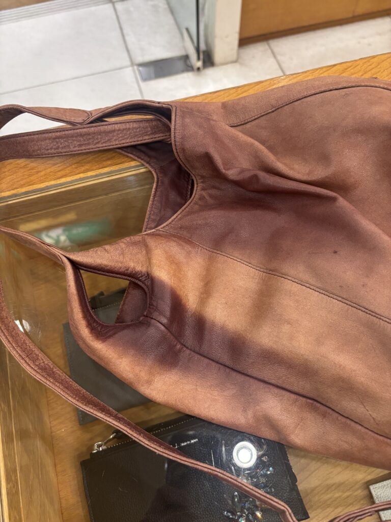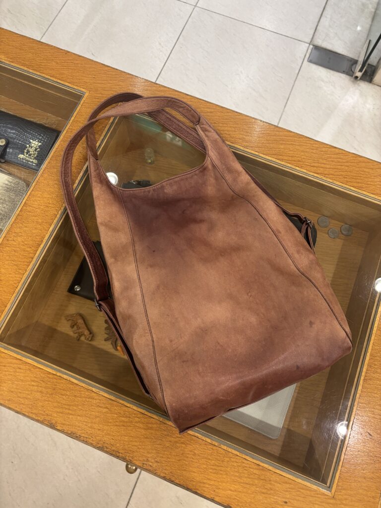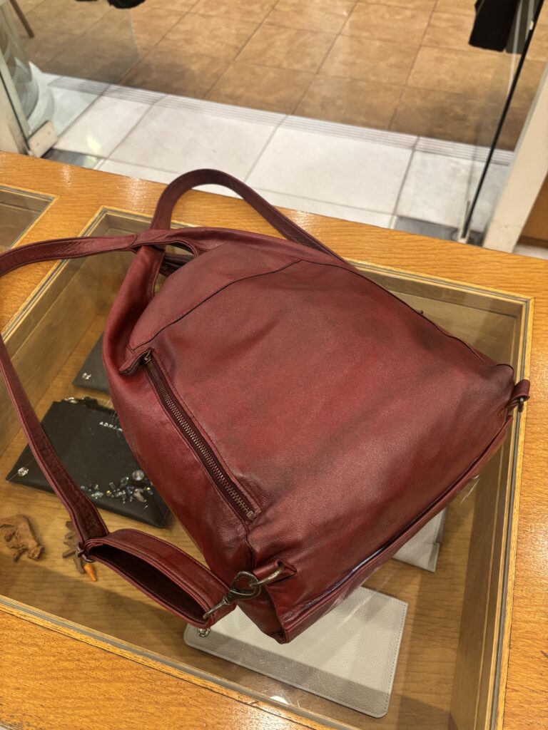革製品の色には顔料と染料がありますが、染料で色付けをしたバッグの魅力はその自然で優しい発色です。日頃からオイルでメンテナンスしてあげることで革色の劣化を遅らせたり、風合いを保つことができます。ただ、顔料の製品に比べると使用による経年変化で少しずつオイルが抜け、摩擦や日照で少しずつ褪色しやすい傾向があります。