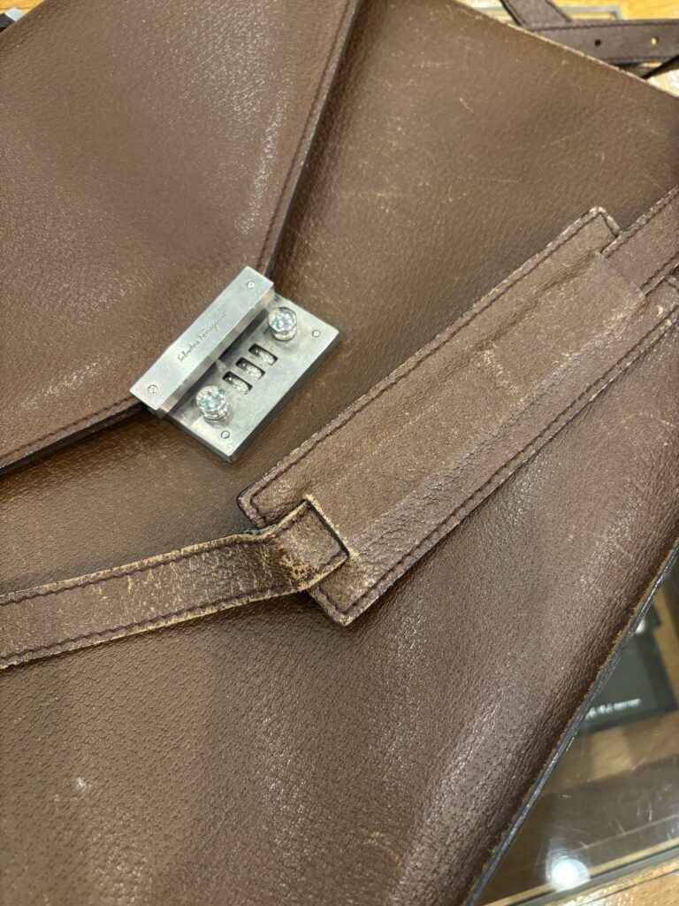 こちらはイタリアの老舗ハイブランド「フェラガモ」の鞄、質の良いモノを選んで大切に長く使う(しっかり元が取れます!)、個人的にもとてもステキな考え方で支持します。